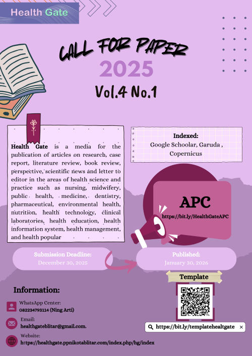 Starting in January 2024, the Health Gate journal uses a new template that can be accessed at the link template journal for the publication of volume 2 number 1 in January 2024